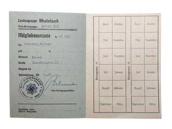 Reichsluftschutzbund Mitgliedsausweis (Blanco)