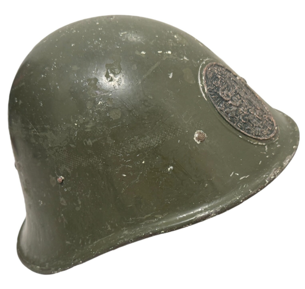 De helm verkeerd nog in mooie staat. De helm is ooit overschilderd geweest. Dit is netjes verwijderd waardoor de mooie groene kleur weer naar boven kwam. Het is een M27 helm met een cm1934 stempel. Volgens de kenners is dat best uniek. Leuke originele helm voor iedere collectie!