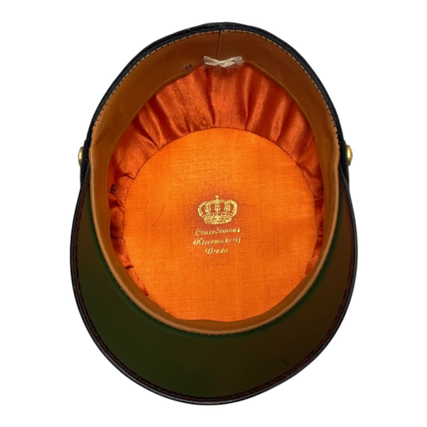 This Dutch artillery gala 'Hoofdofficier' cap is in excellent, near-new condition. The size sticker (58) is still present, and it was crafted by Louis Simons from Breda. This style of kepi was worn by officers starting from the rank of Colonel and upwards during formal occasions or ceremonies. A rare and exceptional piece, it is a perfect addition for any military uniform collector or enthusiast of Dutch military history!