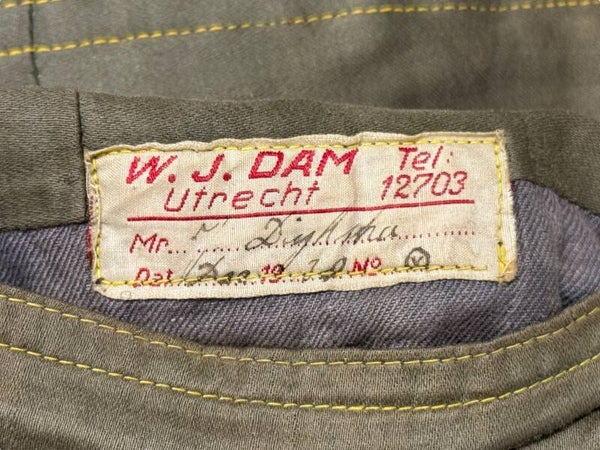 Het jasje verkeerd nog in een prachtige staat. Hij is gemaakt in Utrecht door 'W.J. Dam'. Ook staan er een naam in J. Dijkstra 1 december 1938. Een zeer leuk jasje voor op de pop en om verder onderzoek naar te doen!