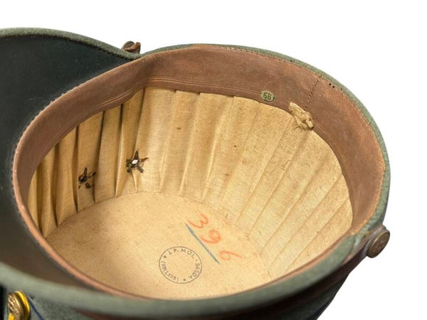 The kepi is still in good condition. Unfortunately there is a hole on top. Fortunately, this is not very noticeable. It was made for a non-commissioned officer of the 3rd Infantry Regiment. What is special is that it has a CM1937 stamp under the sweatband. This means that the state has commissioned the making of the kepi. It was made by J. P. Mol from Breda. There is also a number in it. Most likely from a theater company. The size label (56) is also still there. A very cool kepie that you won't encounter again anytime soon!