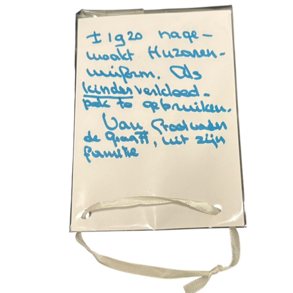 Het jasje verkeerd nog in zeer mooie staat en is erg degelijk uitgevoerd. In het jasje zat en kaartje met wat info. Of dit klopt is niet te zeggen. Perfect voor bij een 'grote' attila. Perfect voor iedere verzameling!