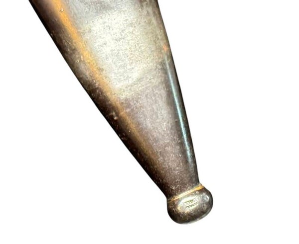 German Late War k98 bayonet. The bayonet is maker marked 'S.178 G 41' (Gebr. Heller, Marienthal, 1935) and numbered '1703'. Scabbard Maker marked 'F. Herder A sn, 1936' and numbered '5969 x'. The grips are typical late war bakelite. Nice bayonet for in the display case!