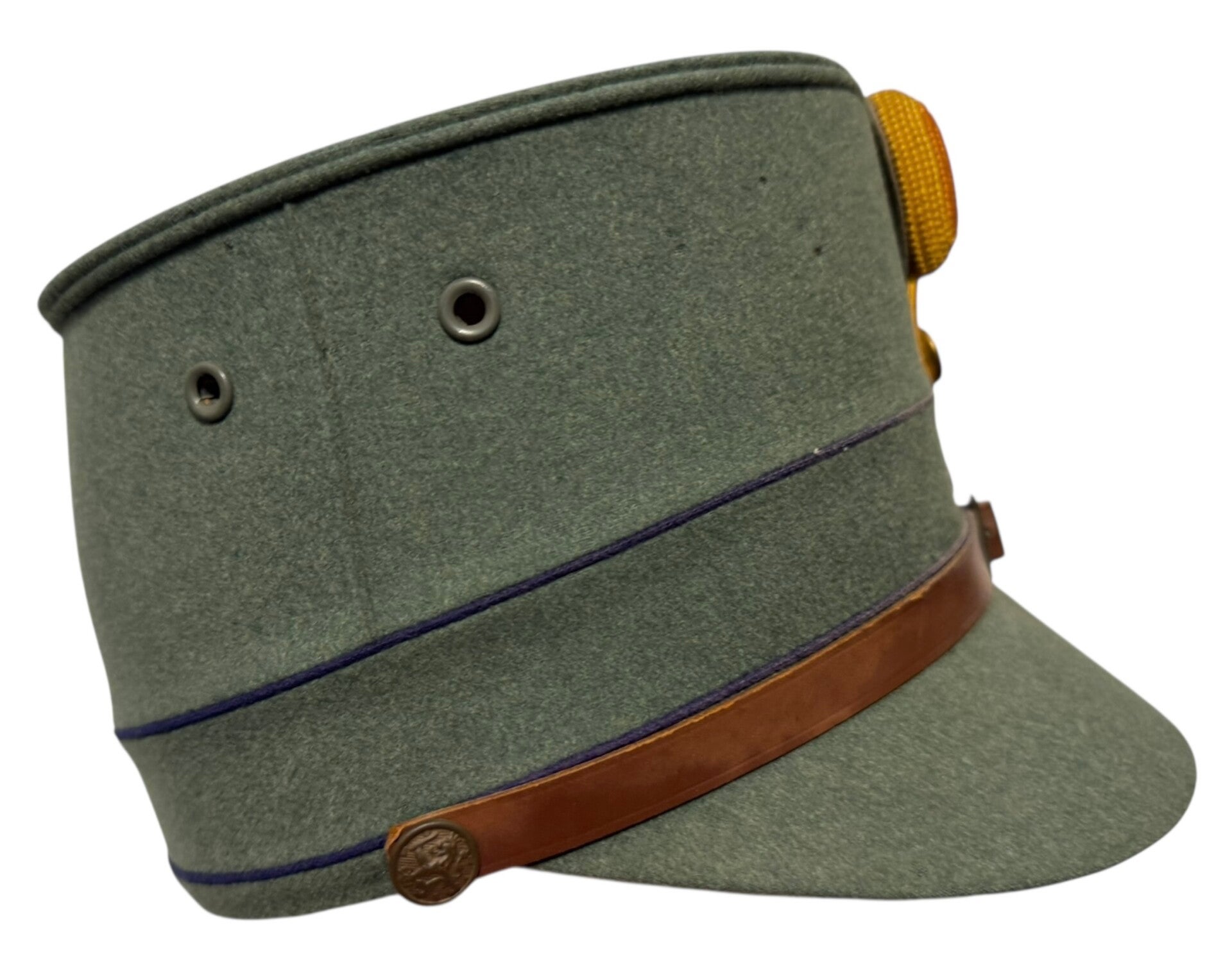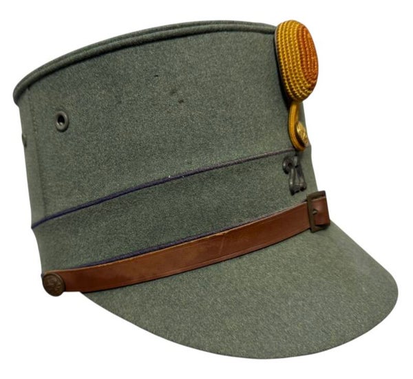 The kepie is in almost like-new condition, with a few small spots here and there, though nothing distracting. It was made by the firm J. P. Mol from Breda. Under the sweatband, it is stamped CM1937, which means it was issued by the state. J. P. Mol was the only firm designated for that purpose. A great kepie that would look beautiful in the display case or on the mannequin!