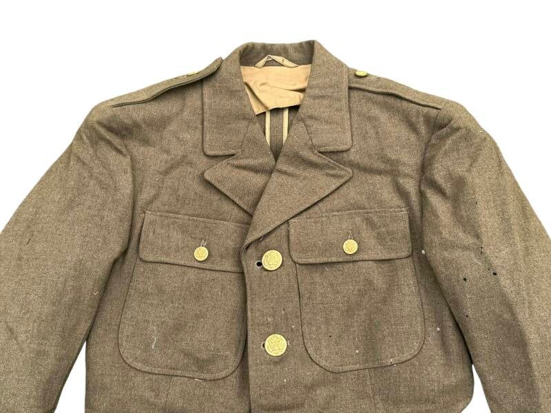 Original US Army A-Class uniform from World War II. The uniform has no insignia, only original buttons. There are a few small moth holes on the right sleeve. Size 37-R.