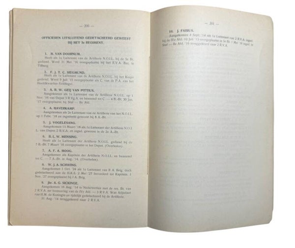 Het boek verkeerd nog in een goede gebruikte staat en is uitgegeven in 1937. Het gaat hier omhet 3de Regiment Veld-Artillerie van 1906-1931. In het boekje staat ook een namenlijst van de betrokken officieren. Gaaf boekje die je niet vaak tegenkomt!