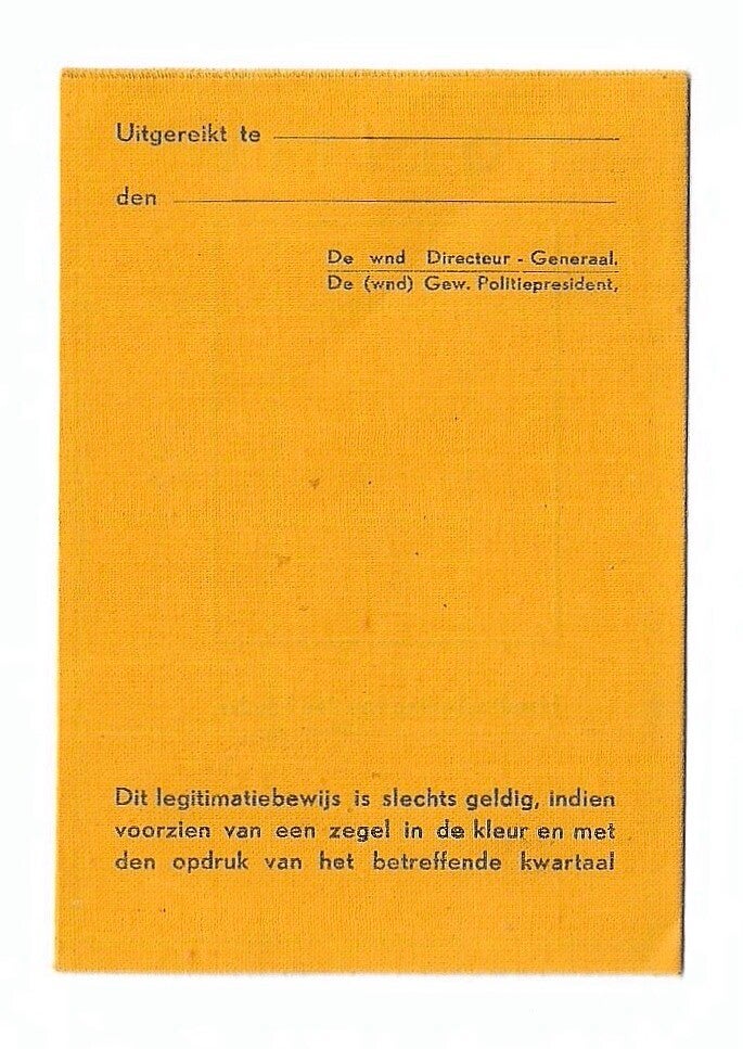 Het bewijs verkeerd in nieuwstaat, helaas is hij niet ingevuld. Deze werd uitgegeven aan leden van de politie tijdens de oorlog. Leuk item die je haast niet tegenkomt!