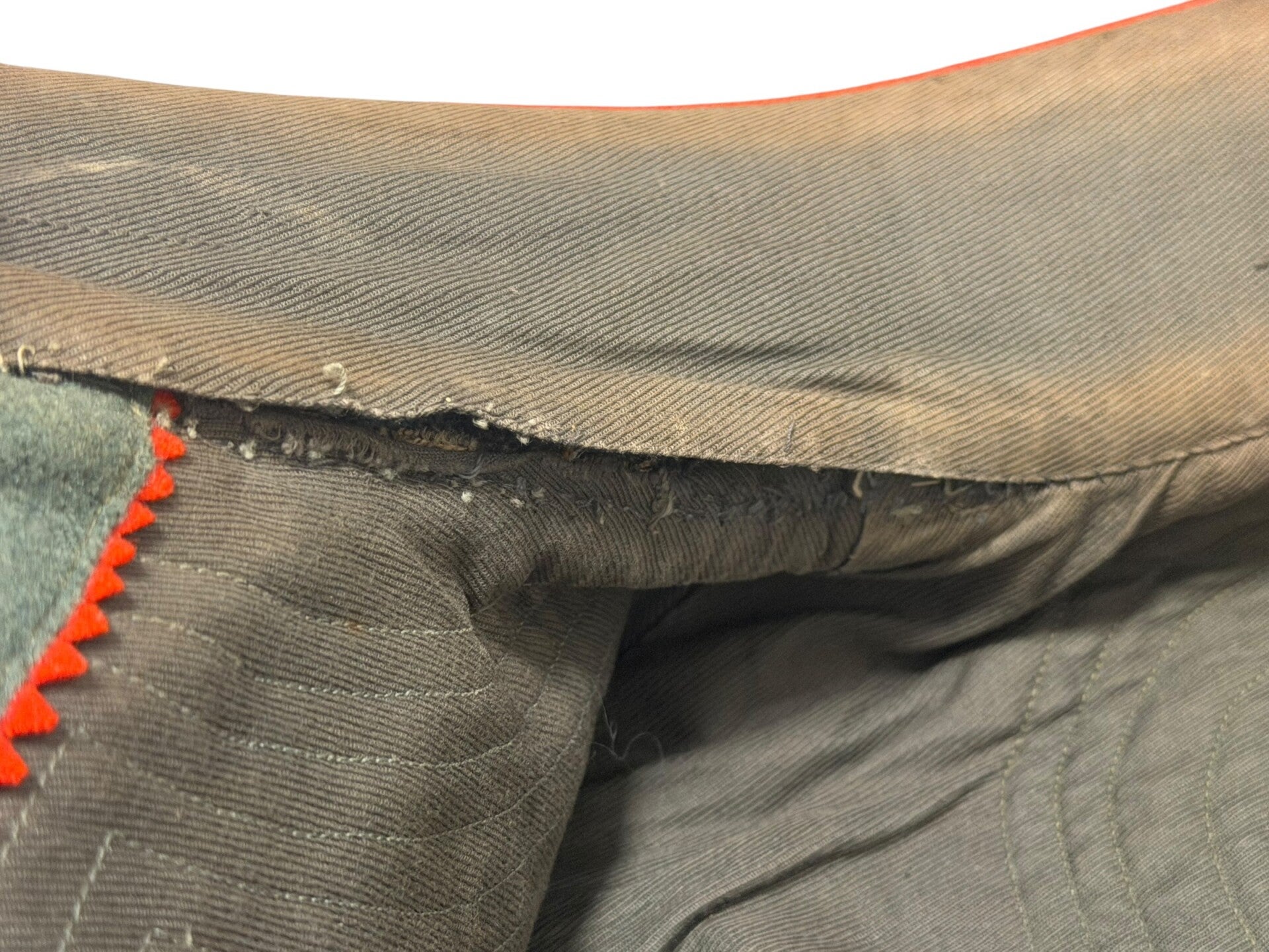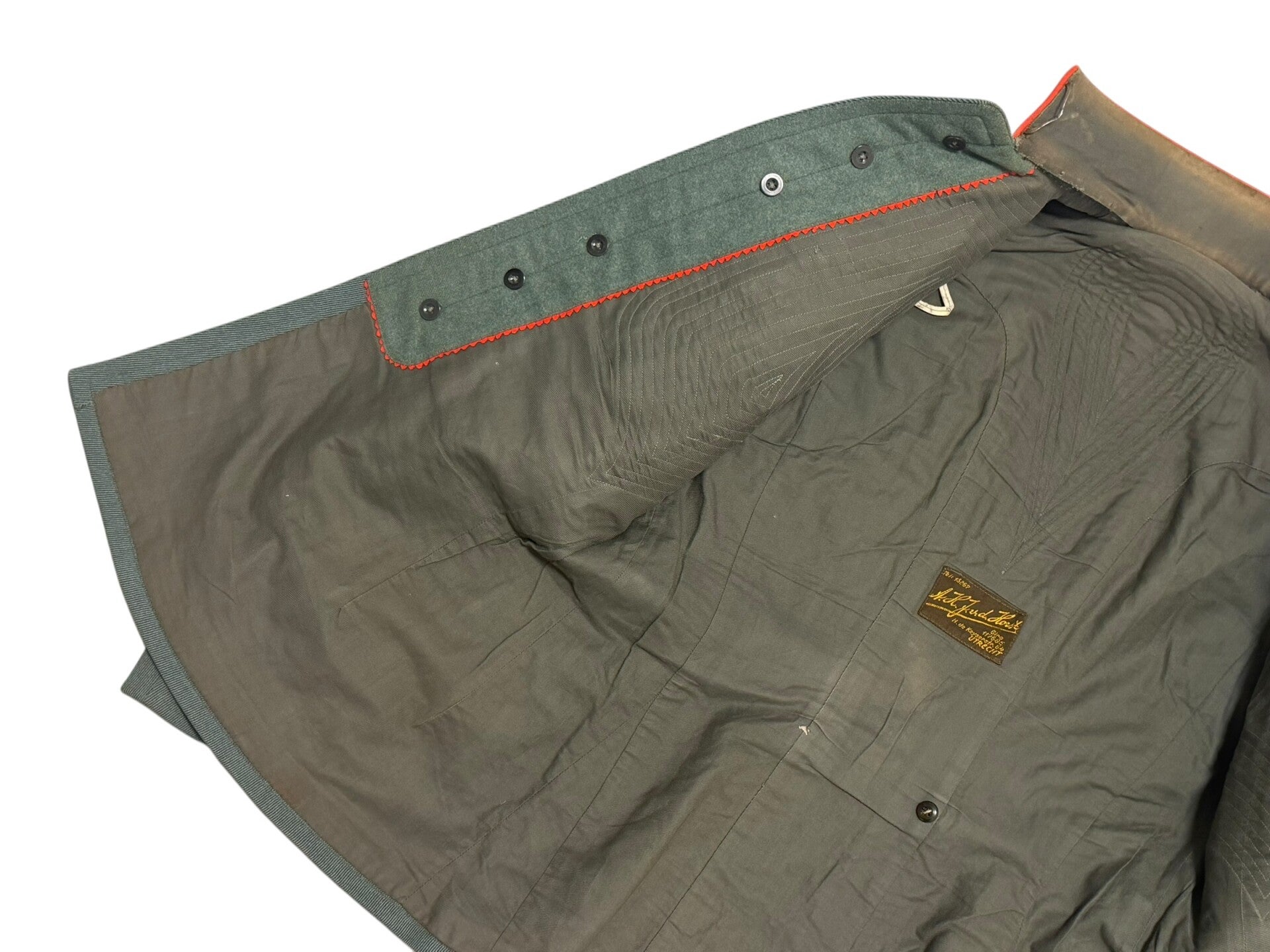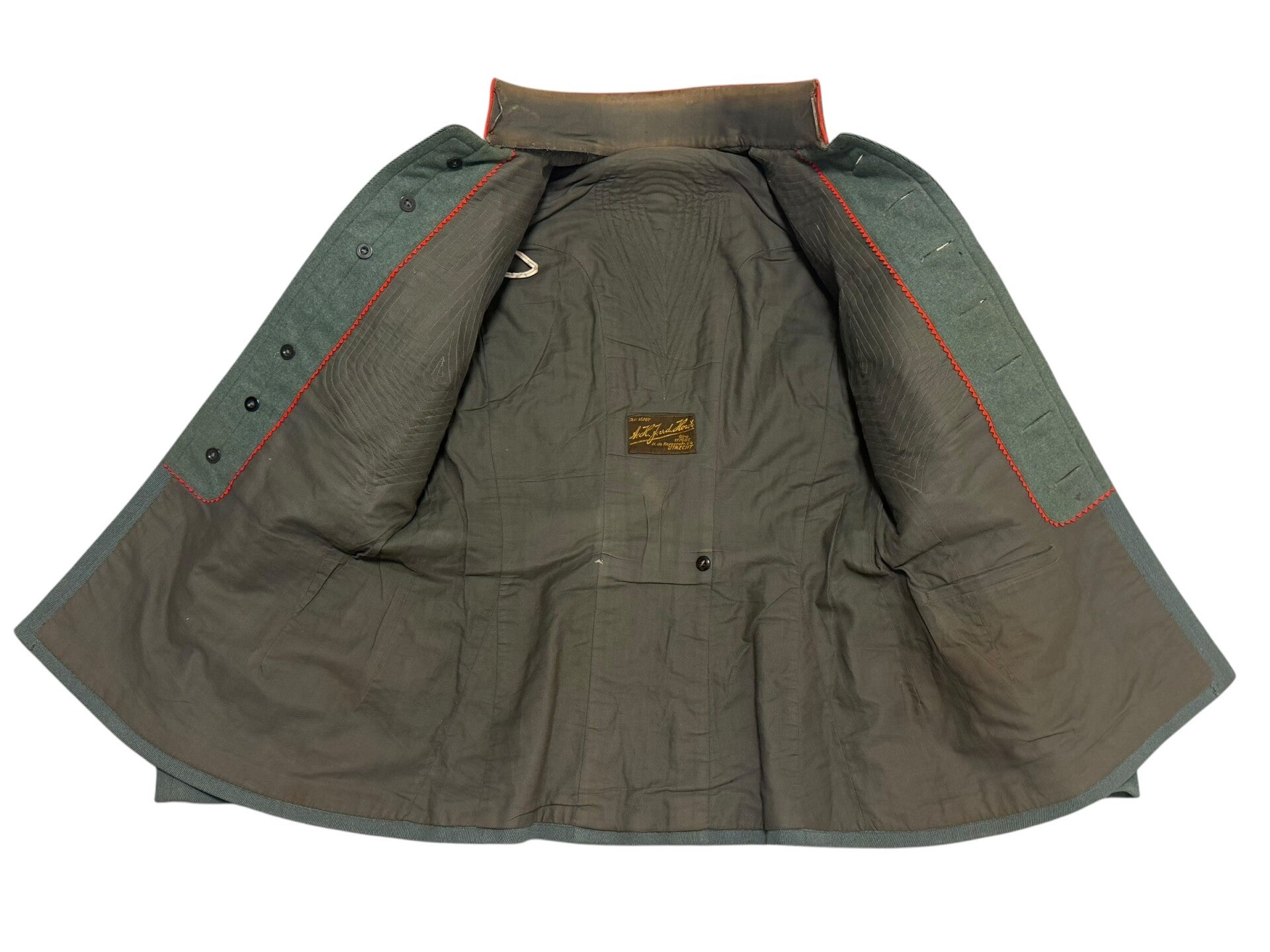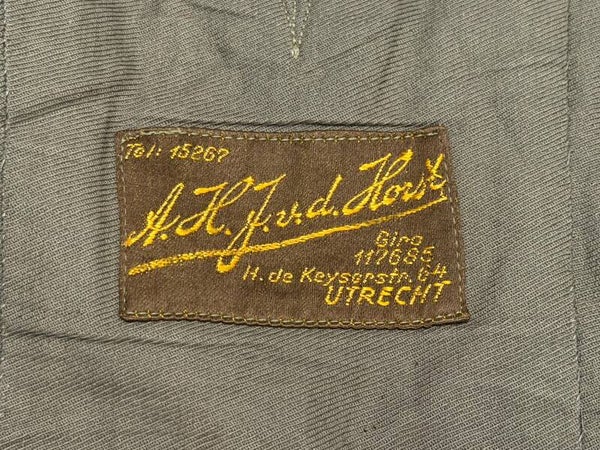The set is in a neat used condition, the jacket was made by the company "A.H.J.v.d. Horst" from Utrecht. Unfortunately there are some spots here and there on the jacket. The set is almost color matching and would therefore look very nice on a mannequin. Unfortunately no name was found in the set. Very nice set that would fit neatly in the collection.